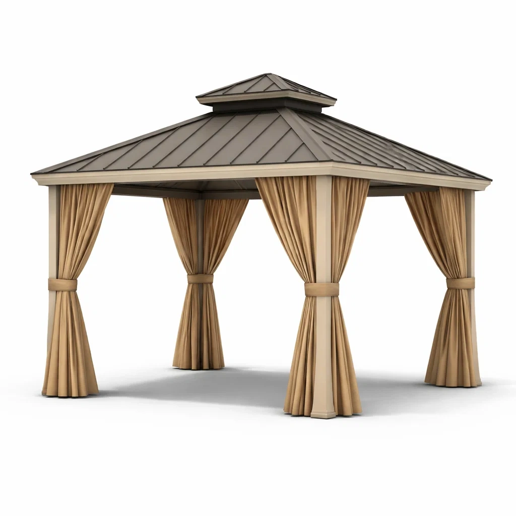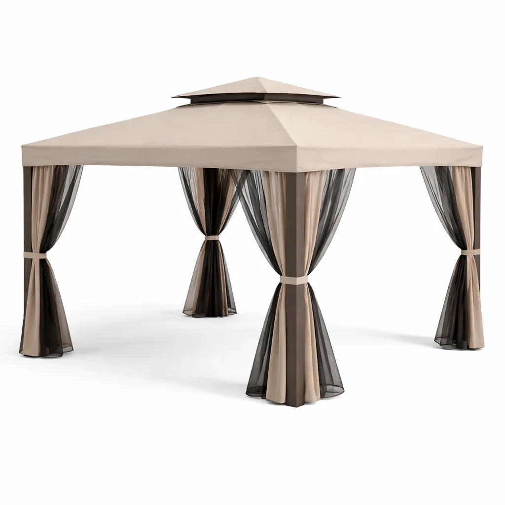 Pavillon aus aluminium mit vorhängen braun