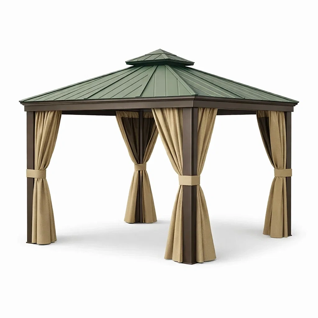 Pavillon mit aluminiumrahmen und grünem metalldach