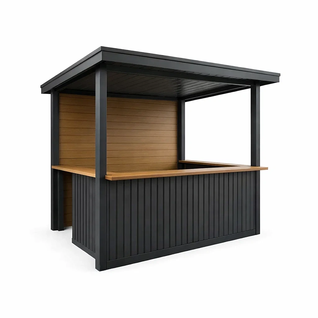 Barpavillon aus aluminium und holz anthrazit