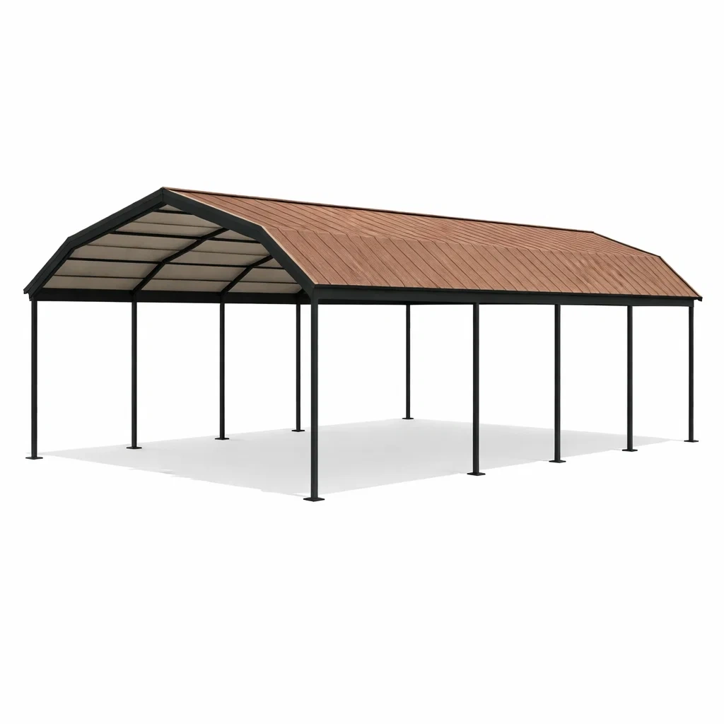 Dieser Carport besteht aus einem robusten Stahlrahmen mit pulverbeschichteter Oberfläche. Das Dach ist aus Polycarbonat gefertigt und bietet eine wasserdichte Abdeckung. Es hält Winden bis zu 100 km/h stand.