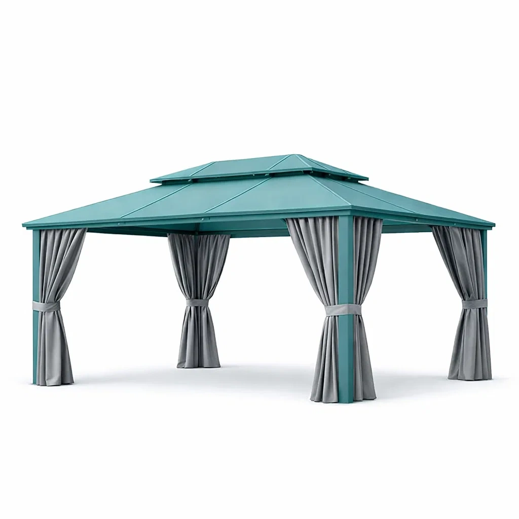 Komponenten: Pavillonrahmen, Dachpaneele, Vorhänge